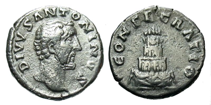 Lot 31-156. Divus Antoninus Pius. Died A.D. 161. AR denarius. Rome mint, Struck A.D. 161.