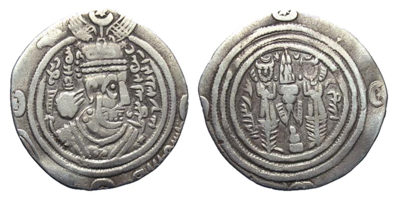 Lot 31-223. Arab-Sasanian. 'Abd Allah b. al-Zubayr. Rival caliph, 60-73/680-692. AR dirham. Kirman mint, Dated A.H. 63.