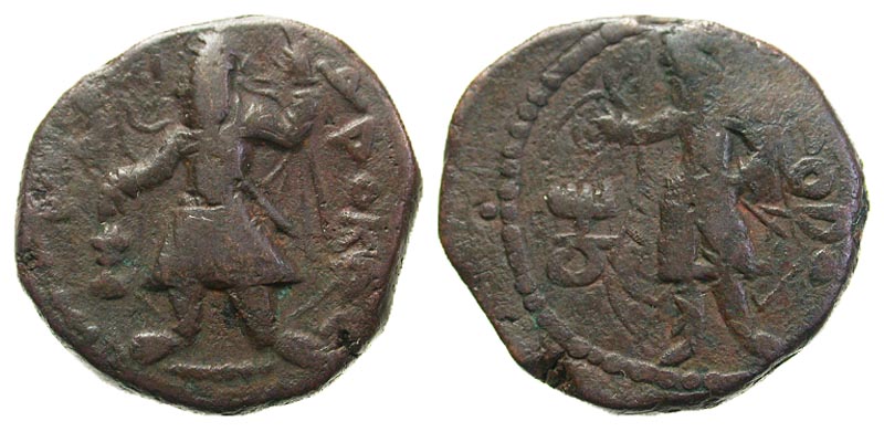 Lot 4-068. Kushan Empire. Kanishka I. A.D. 127/8-ca. 147. Æ tetradrachm.