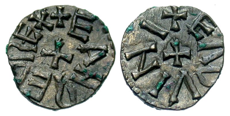 Anglo-Saxon, Kings of Northumbria. Eanred. 810-841. Æ styca (12.4 mm, 0.97 g, 3 h). York mint, Struck 837-841. Eadwine, moneyer. +EANRED REX, small cross / +EADVINI, small cross. SCBC 864; North 186; Abramson 20/11f. VF. Ex Peter Moffat collection.
