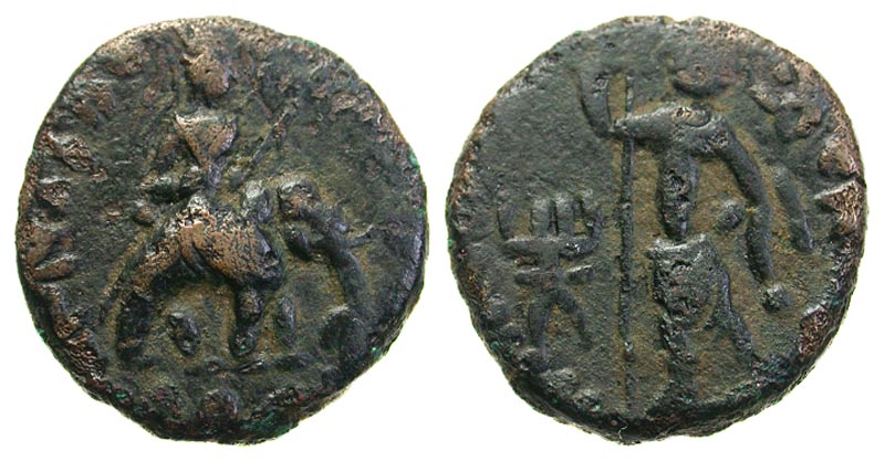 Lot 4-069. Kushan Empire. Huvishka. Ca. A.D. 155-ca. 187. Æ tetradrachm.