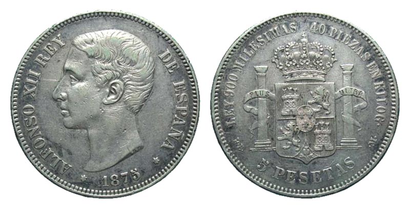 Lot 31-259. Spain. Alfonso XII. 1874-1885. AR 5 pesetas. Madrid mint, 1875.