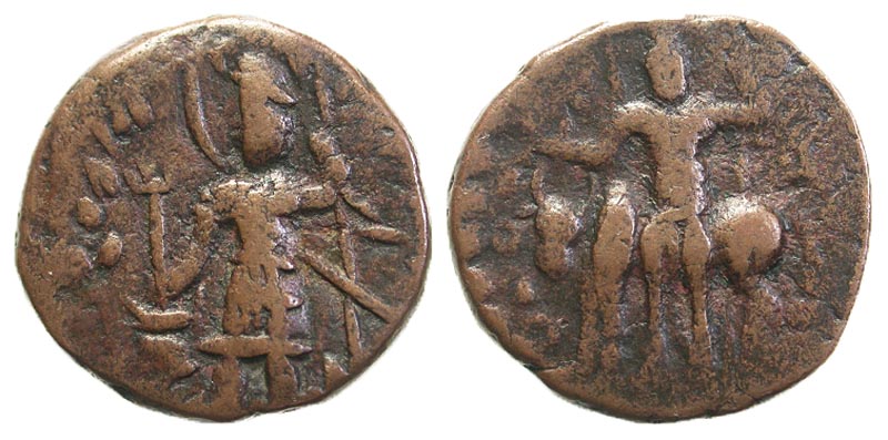 Lot 4-070. Kushan Empire. Vasudeva I. Ca. A.D. 191-230. Æ tetradrachm.