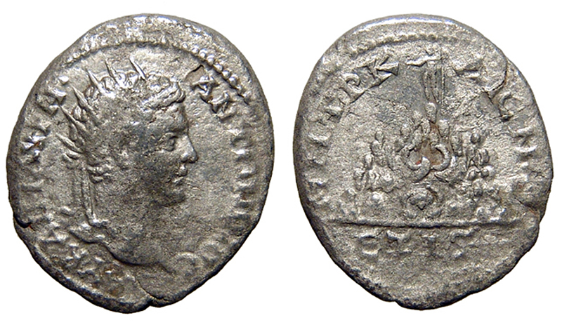 Lot 4-108. Cappadocia, Caesarea. Caracalla. A.D. 198-217. AR tridrachm. Year 16=A.D. 208.