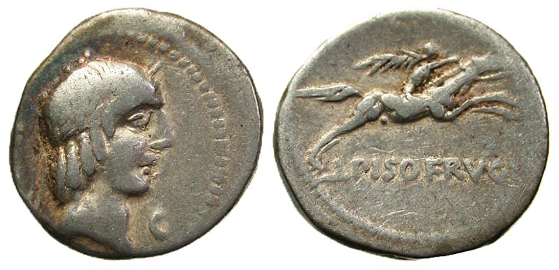 Lot 4-120. L. Capurnius L.f. L.n. Piso Frugi. 90 B.C. AR denarius. Rome.