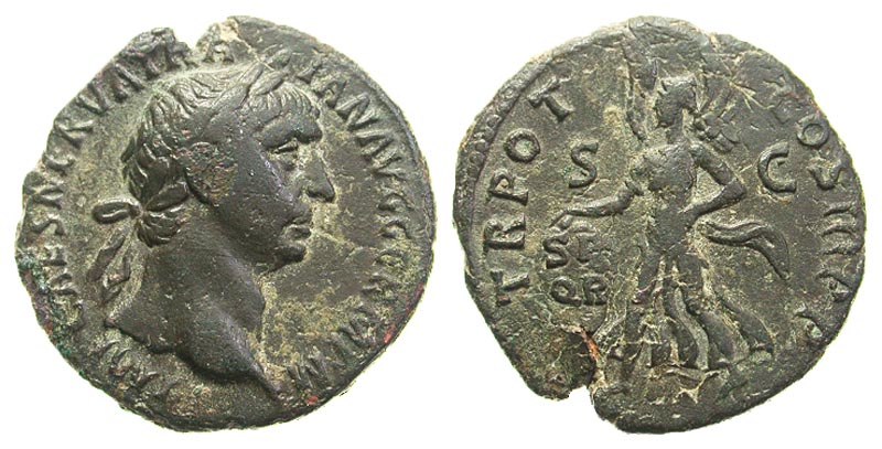 Lot 4-127. Trajan. A.D. 98-117. Æ as. Rome, A.D. 101-102.