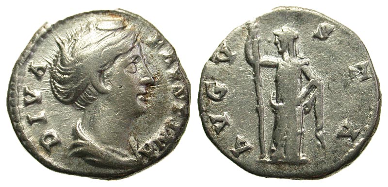 Lot 4-140. Diva Faustina I. Died A.D. 140/1. AR denarius. Rome, A.D. 145.