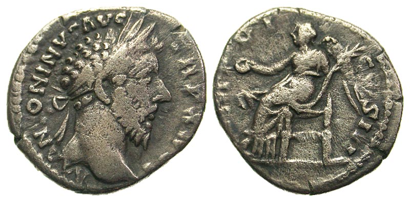Lot 4-143. Marcus Aurelius. A.D. 161-180. AR denarius. Rome, A.D. 174-175.