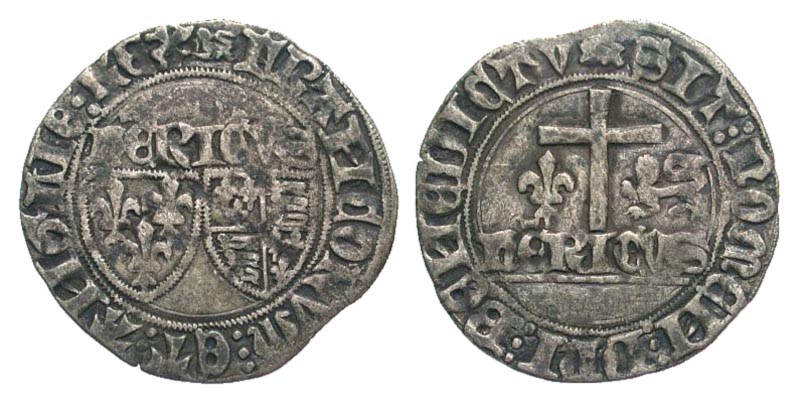 Lot 32-241. Anglo-Gallic. Henry VI. 1422-1453. AR Grand Blanc aux Ecus. Rouen mint, Struck 1433-1444. im: leopard passant. Etienne Marcel, mintmaster.