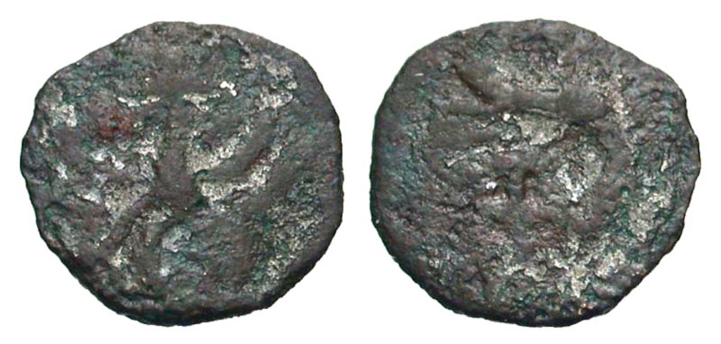 Balkans, Wallachia. Vlad II Dracul. 1436-1442, 1443-1447. Æ ban (11.3 mm, 0.48 g, 12 h). Targoviste mint, Struck 1445-1446. Extremely rare. Eagle standing left, head right, with cross set on wing / Dragon advancing left, with wings spread. MBR 253. Fine, typcially crude.