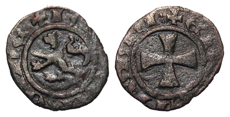 Crusader States, Lusignan Kingdom of Cyprus. James I. 1382-1398. Bi denier (15.4 mm, 0.55 g, 7 h). + IAQVЄ ROI · D, lion rampant left / + IЄRV1147, cross pattée. Metcalf 797; CCS 113a; Tziambazias 52. Fine.