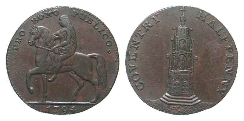 Lot 32-264. Great Britain, Warwickshire. Coventry. 1794. Æ half penny.