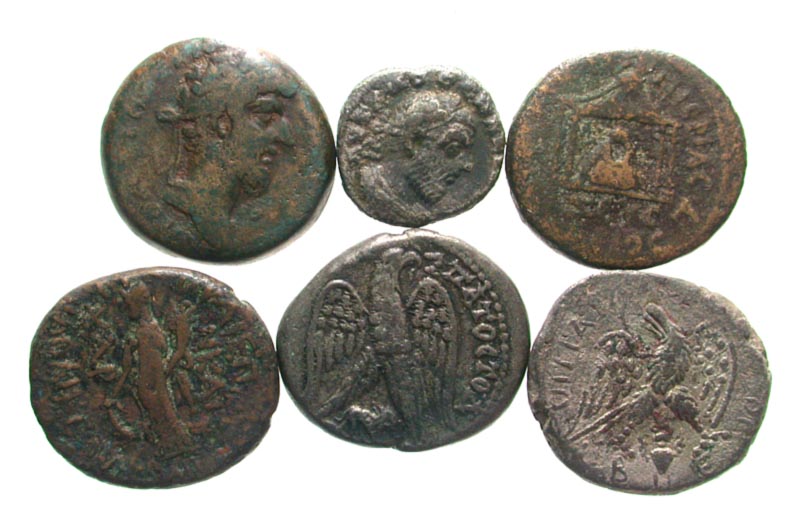 Lot of 6 Syrian Provincial Coins. Beroea, Macrinus // Antioch, Macrinus // Laodicea, Domitain // Laodicea, Marcus Aurelius // Seleucia, Trajan // Hierapolis, Caracalla. Avg F-VF.