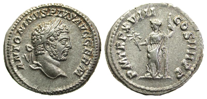Lot 4-153. Caracalla. A.D. 198-217. AR denarius. Rome, A.D. 215.