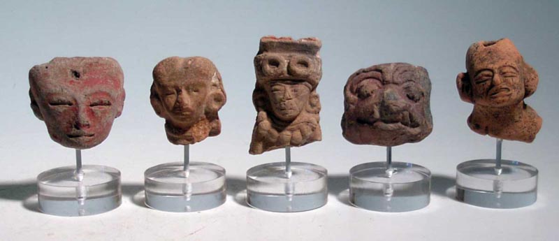 Lot 32-295. 5 Teotihuacan Heads from Mexico, ca. 400 - 750 AD.