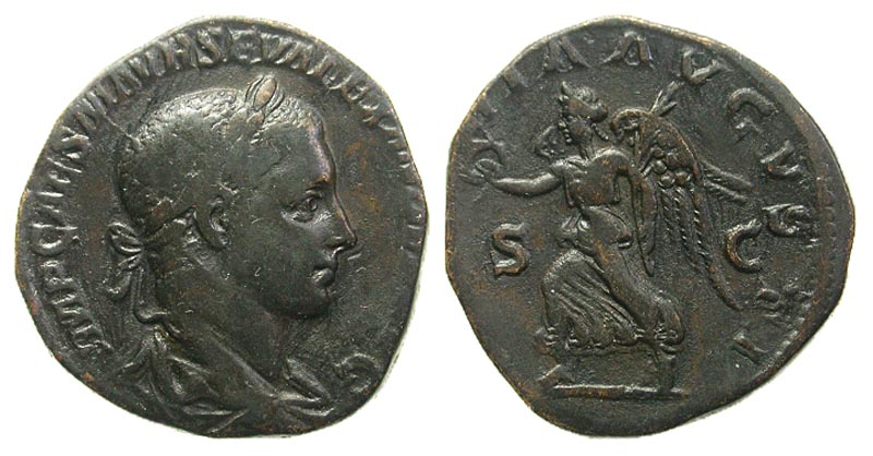 Lot 4-159. Severus Alexander. A.D. 222-235. Æ sestertius. Rome, A.D. 225.