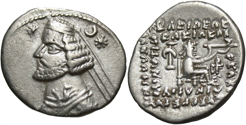 Lot 33-060. Parthian Kingdom. Orodes II. 57-38 B.C. AR drachm. Rhagae mint.