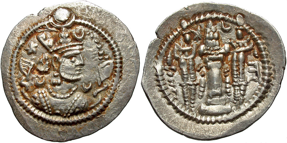 Lot 33-066. Sasanian Kingdom. Peroz I. A.D. 457/9-484. AR drachm. AW (Ahwaz) mint.
