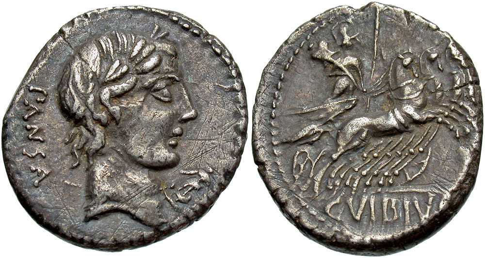 Lot 33-115. C. Vibius C.f. Pansa. 90 B.C. AR denarius. Rome mint.