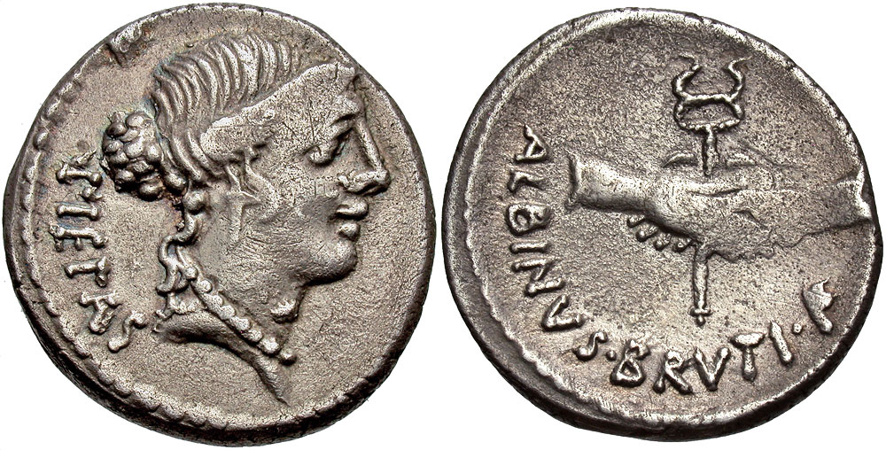 Lot 33-121. D. Junius Brutus Albinus. 48 B.C. AR denarius. Rome mint.