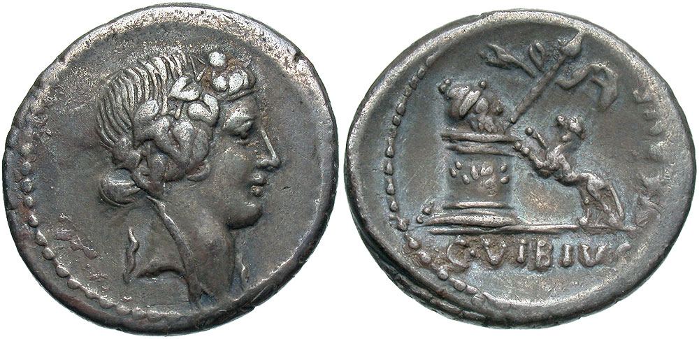Lot 33-123. C. Vibius Varus. 42 B.C. AR denarius. Rome mint.