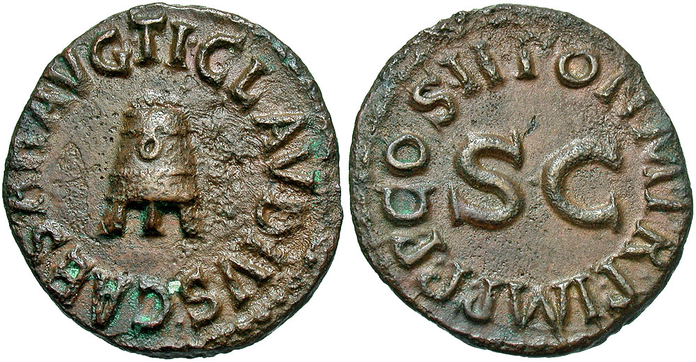 Lot 33-128. Claudius. A.D. 41-54. Æ quadrans. Rome mint, Struck A.D. 41/2.