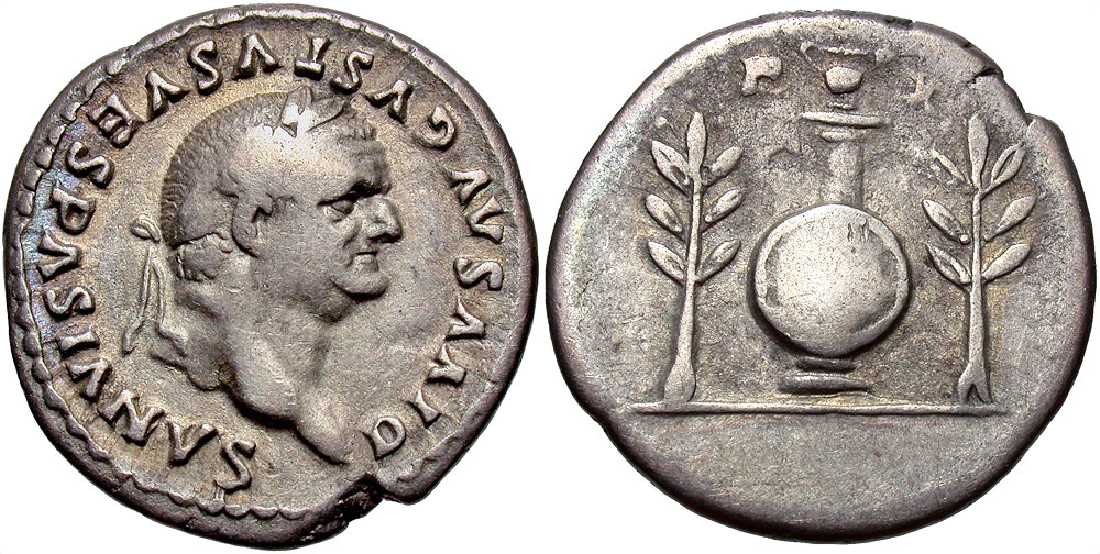 Lot 33-135. Divus Vespasian. Died A.D. 79. AR denarius. Rome mint, Struck under Titus, A.D. 80/1.