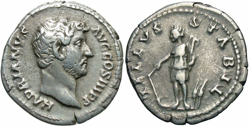 Lot 33-144. Hadrian. A.D. 117-138. AR denarius. Rome mint, Struck A.D. 134-138.