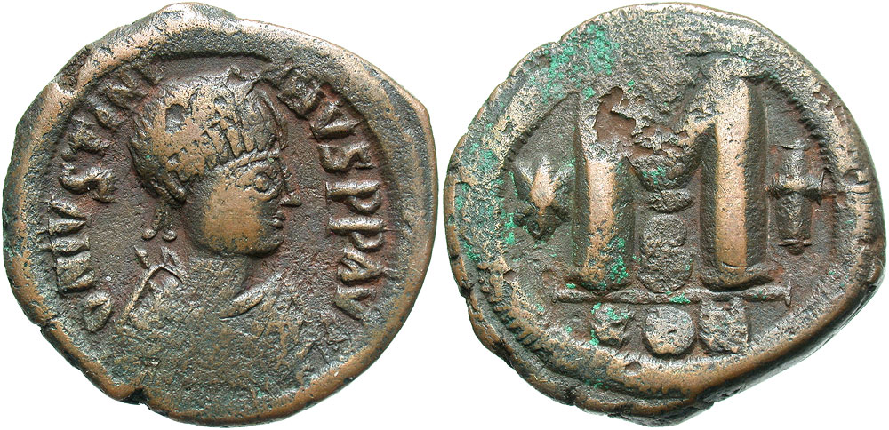 Lot 33-205. Justinian I. 527-565. Æ follis. Constantinople mint, Struck 527-537.