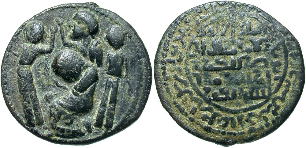 Lot 33-216. Artuqids of Mardin. Husam al-Din Yuluq Arslan. 580-597/1184-1200. Æ dirham. NM, Dated A.H. 589. 'Death of Saladin'.