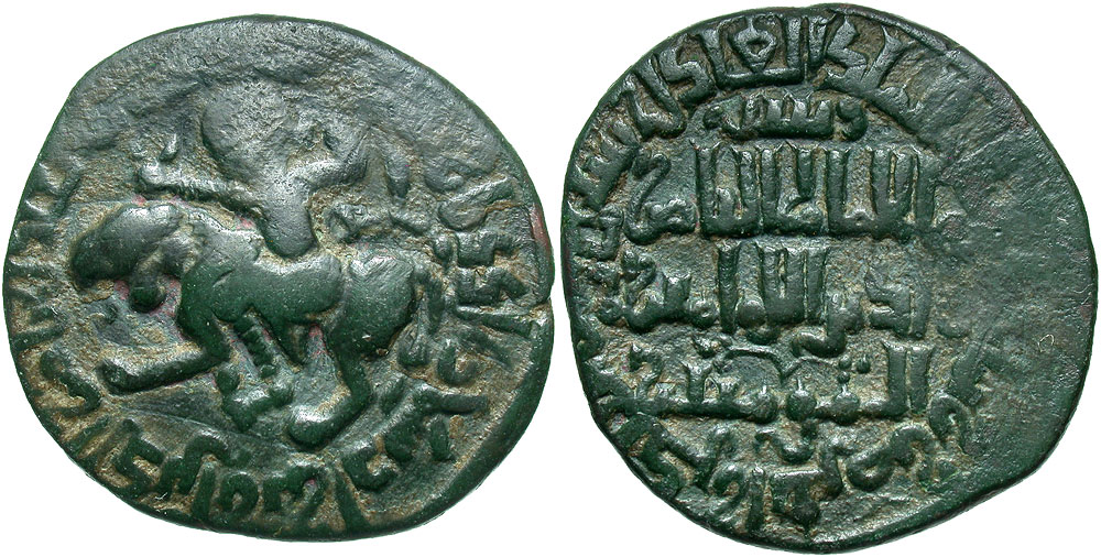 Lot 33-217. Artuqids of Mardin. Nasir al-Din Artuq Arslan. 597-637/1200-1239. Æ dirham. Dated A.H. 606.