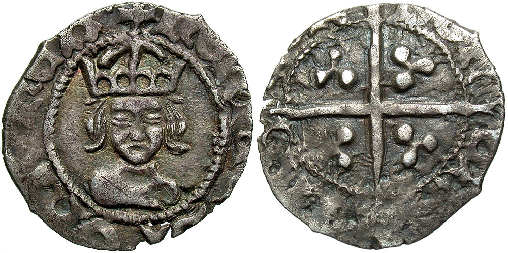 England. Henry VII. 1485-1509. AR halfpenny (11 mm, 0.35 g). Facing bust issue, class IIIa. London mint, Struck 1488/9. Crowned facing bust / Long cross with trefoils in quarters. North 1734; SCBC 2244. VF, toned. Attractive portrait.