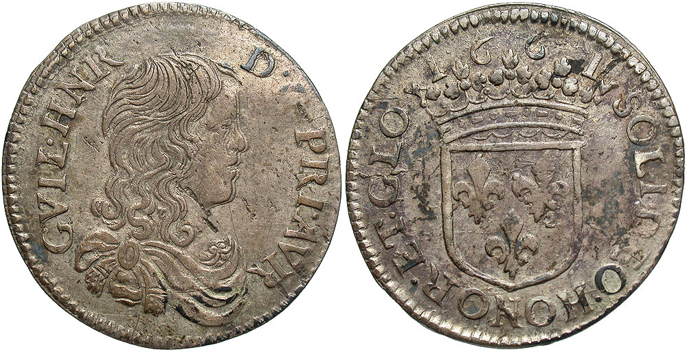 Lot 33-274. France, Orange. Guillaume Henri of Nassau. 1661. AR 1/12 ecu.