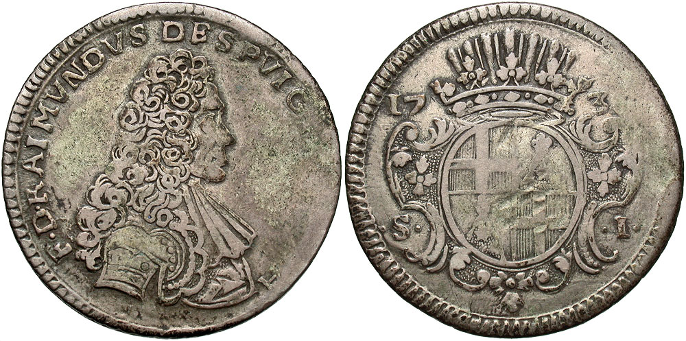 Lot 33-311. Malta, Order of Malta. Ramon Despuig. 1738. AR scudo.