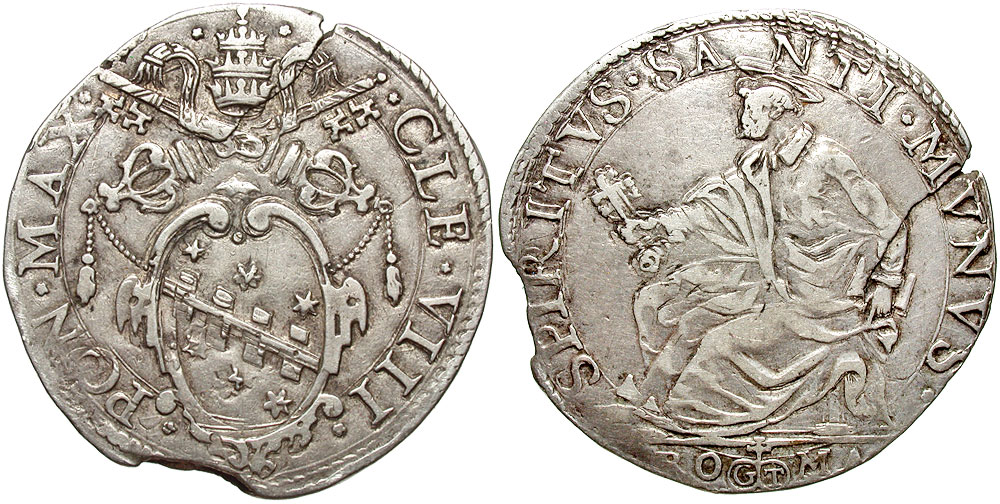 Lot 33-320. Papal States. Clement VIII. 1592-1605. AR testona. Rome mint.
