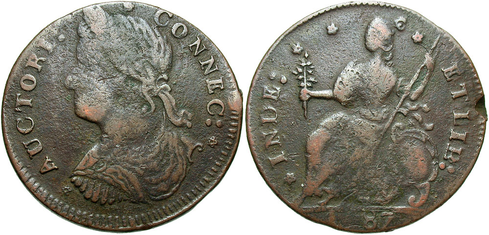 Lot 33-328. Colonial America, Connecticut. 1787. Copper.
