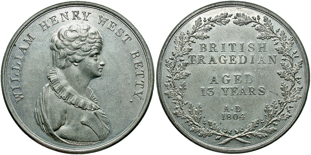 Lot 33-336. England. William Henry West Betty, actor. 1804. WM medal. By J. Westwood.