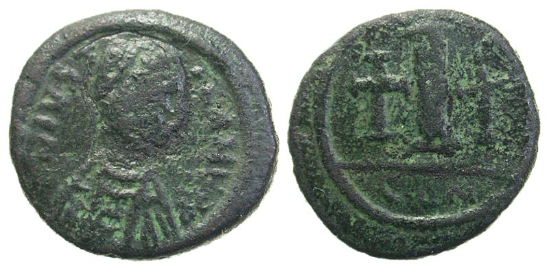 Lot 4-192. Justinian I. 527-565. Æ decanummium. Constantine in Numidia (?), 552-565. Ex CNA XIX, 153.