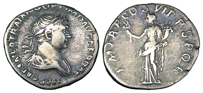 Lot 1-158. Trajan. A.D. 98-117. AR denarius. Rome, A.D. 116-117.