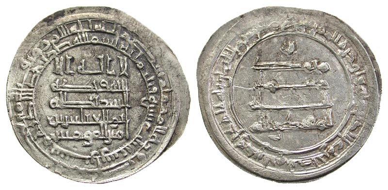 Lot 4-219. Abbasid Caliphate. al-Muqtadir. 295-320/908-932. AR dirham. Shiraz, 313 A.H..