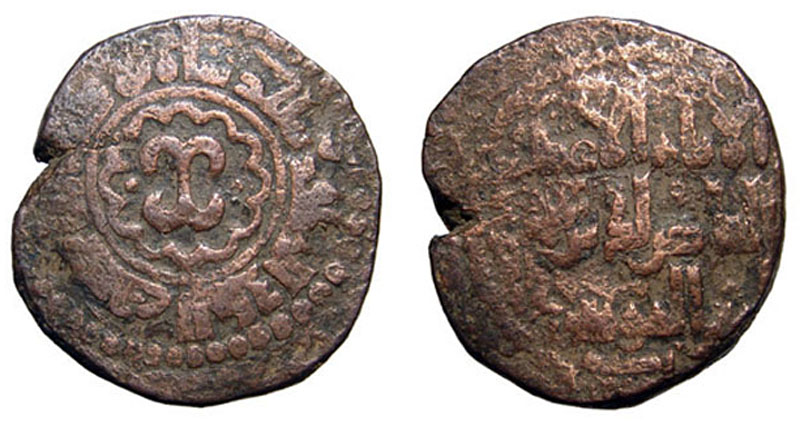 Zengid Atabegs, Al-Jazira. Mu'izz al-Din Sinjar Shah ibn Ghazi. 576-605/1180-1209. Æ double dirhem (31.25 g). 602/1206. Large Zengid tamgha flanked by two annulets within a scallped circle of 12 arcs / Kufic legend. S&S 86.3; Mitch 1143. Fine, rare.