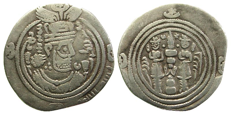 Lot 4-242. Arab-Sasanian. Khusraw type. Ca. 653-670. AR dirham. BJRA, 30.