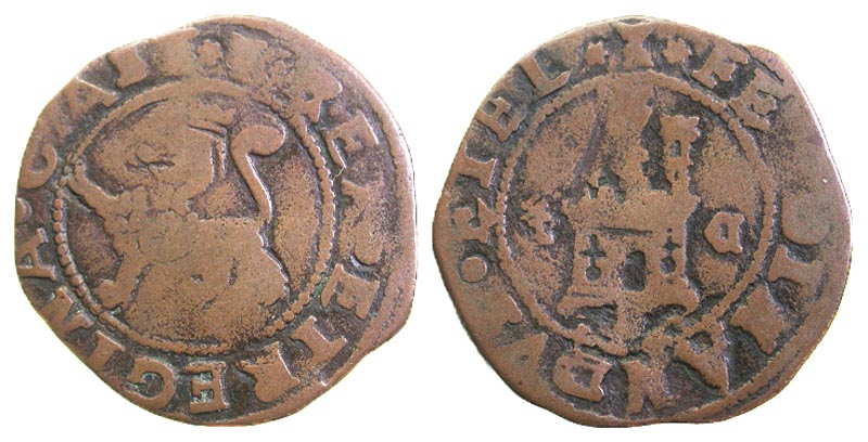 Lot 4-254. Spain, Castile and Leon. Los Reyes Católicos. Fernando V & Isabel I. 1474-1504. Æ 2 maravedis. Cuenca.