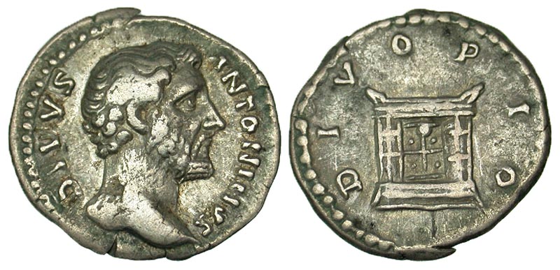 Lot 1-164. Divus Antoninus Pius. Died A.D. 161. AR denarius. Rome, A.D. 162.