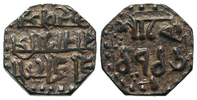 Lot 4-273. INDIA, Princely States. Assam. Gaurinatha Simha. SK 1702-1718/1780-1796. AR 1/4 rupee, octaganal. regnal year 1, SK 1716.