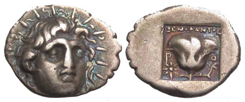 Lot 34-068. Islands off Caria, Rhodos. Rhodes. Ca. 250-229 B.C. AR hemidrachm. Xenophantos, magistrate.