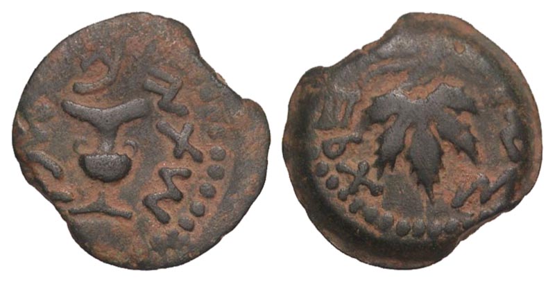 Lot 34-098. First Jewish War. 66-70 C.E. Æ prutah. Dated year 2=67/68 C.E..