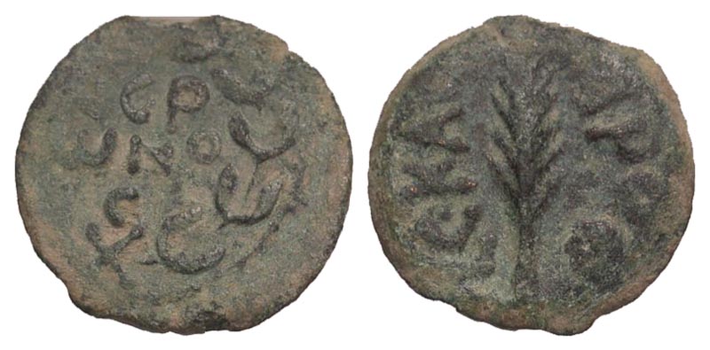 Lot 34-099. Porcius Festus. 59-62 C.E. Æ prutah. Procurator under Nero, Year 5 = 58/59 CE.