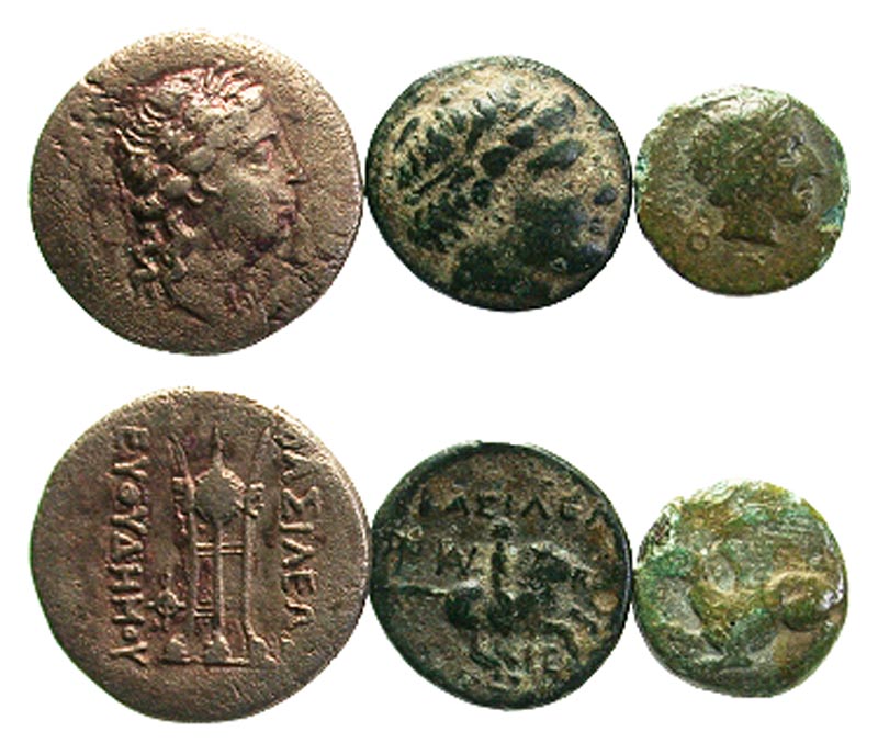 Lot of 3 Greek Bronze Coins. Macedon, Seleukid and Asia Minor. Fine to VF.