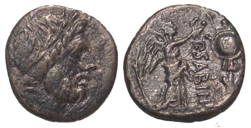 Lot 34-137. P. (Vettius ?) Sabinus. 99 B.C. AR quinarius. Rome mint.